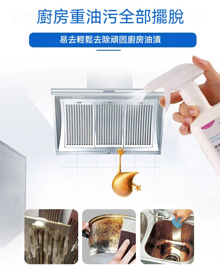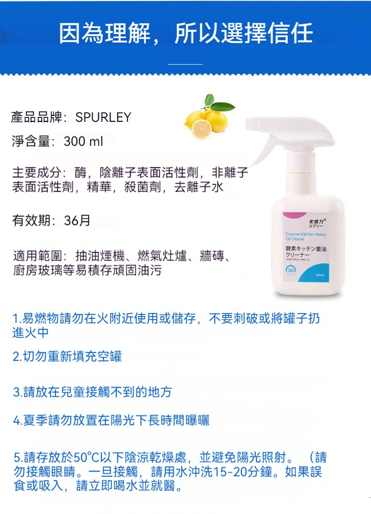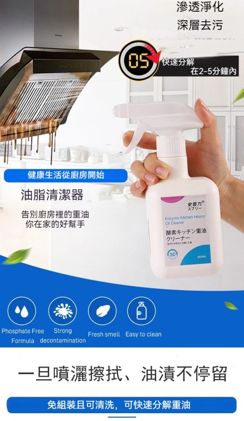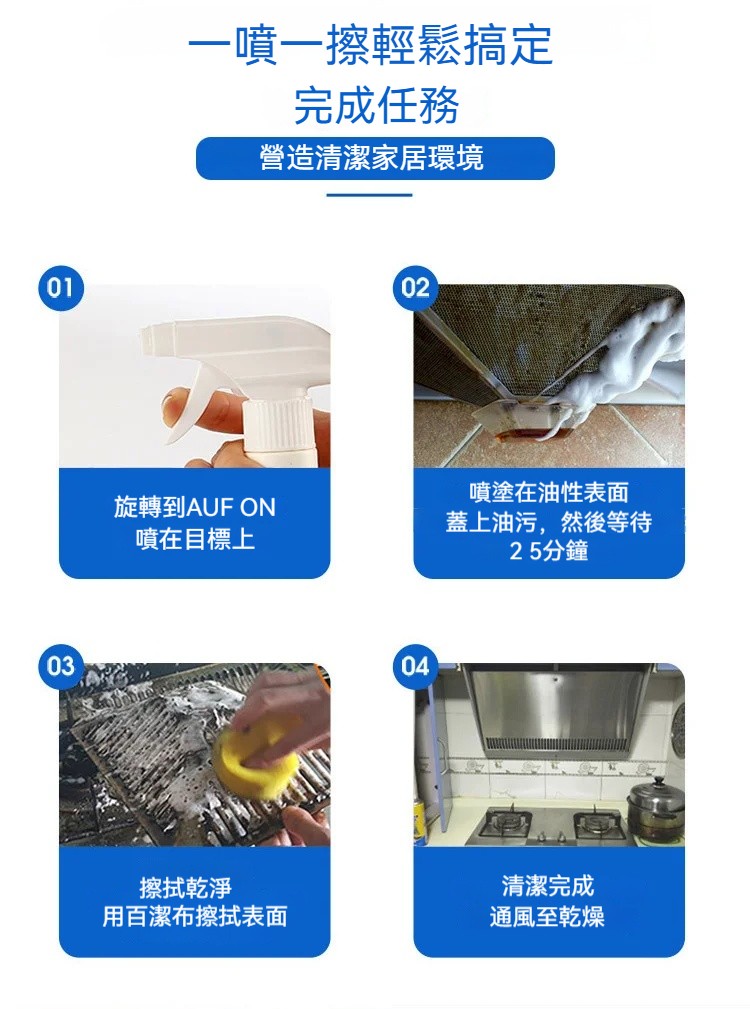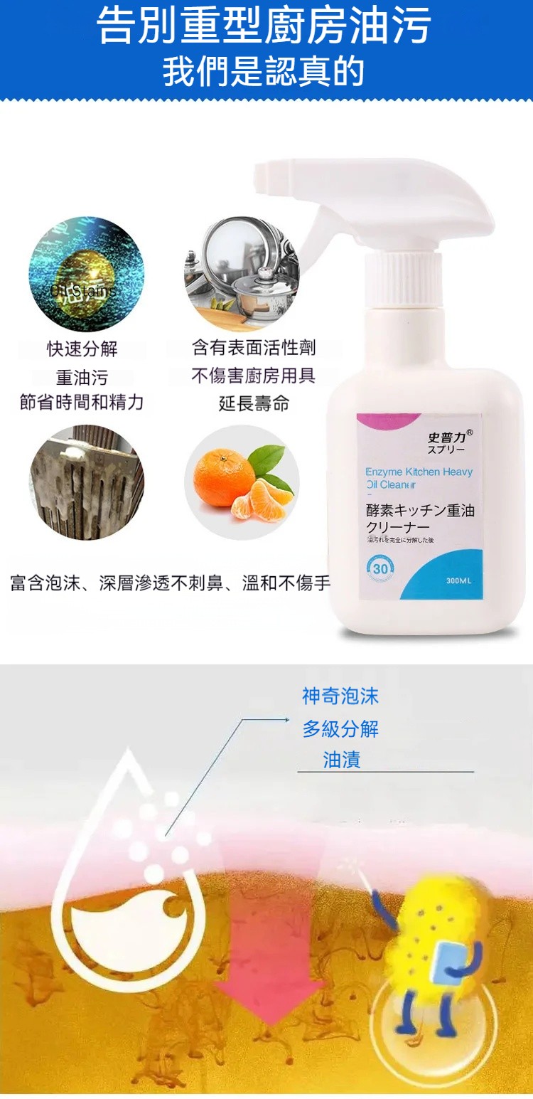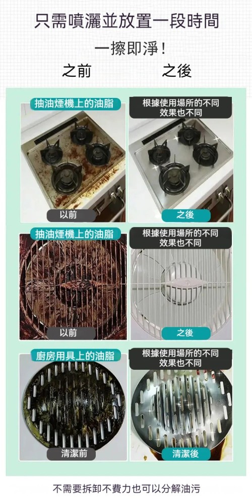 泡沫清潔,強力去油,不傷器具,一噴一擦快速除油污,含有檸檬,活性劑深度清潔,清潔完乾淨留香